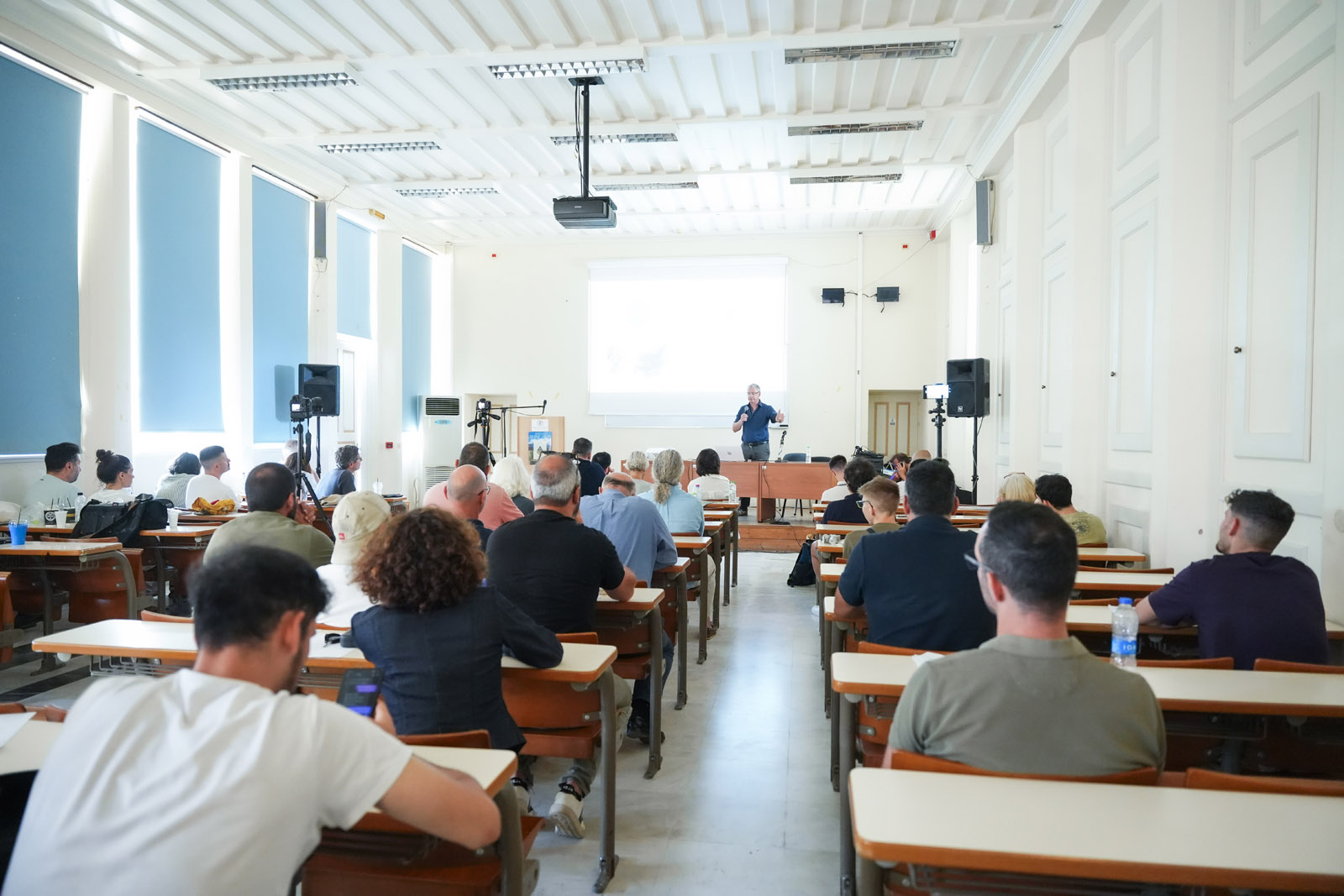 Καλεσμένοι από το εξωτερικό αλλά και από την Ελλάδα μίλησαν για τεχνικές άρδευσης στους αμπελώνες και τεχνικές στο αμπέλι. Συγκεκριμένα ομιλητές ήταν ο διευθυντής αμπελουργίας Mauro Sirvent και ο οινολόγος Martí Roig από ένα από τα μεγαλύτερα οινοποιεία στον κόσμο, το Família Torres, ο οινοποιός Itay Lahat, ο γεωπόνος Στέργιος Γιάννος, ενώ την έναρξη της ημερίδας εισηγήθηκε ο κ. Αργύριος Γεράκης, Ακαδημαϊκός Υπότροφος Τμήματος Επιστήμης και Τεχνολογίας Τροφίμων του Ιονίου Πανεπιστημίου.